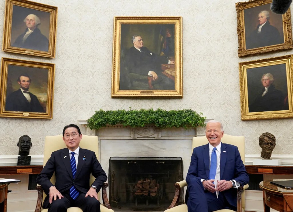 Японы Ерөнхий сайд Фүмио Кишида АНУ-д айлчилж 4 дүгээр сарын 10-ны өдөр Цагаан ордонд АНУ-ын Ерөнхийлөгч Жо Байдентай 85 минут орчим үргэлжилсэн ганцаарчилсан уулзалт хийж, дараа нь хамтарсан хэвлэлийн бага хурал хийв. Уулзалтын дараа гаргасан хамтын мэдэгдлээс үзэхэд талуудын яриа хэлэлцээ геополитик, аж үйлдвэр, батлан хамгаалах гэсэн өргөн сэдвүүдийн хүрээнд болжээ.