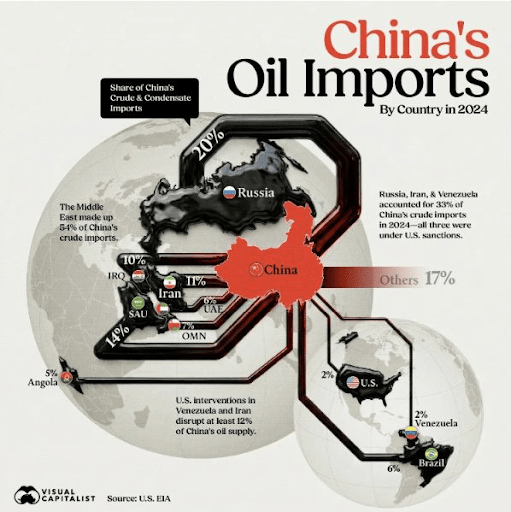 Тиймээс АНУ он гарснаас хойш Венесуэл Улсад тусгай ажиллагаа явуулж, Иран Улсад дайн өрнүүлснээр БНХАУ-ын импортын газрын тосны нийт 13 хувьд нийлүүлэлтийн саатал гарах нөхцөл бүрдсэн нь төдийлөн өндөр тоо биш гэж үзэж болно. South China Morning Post сонин мэдээлснээр Хятад 2026 оны 3 дугаар сарын 12-ны өдрийн байдлаар нийт 120 хоногийн нөөц бүрдүүлсэн гэж үзвэл Иранд болж буй үйл явдал БНХАУ-д ойрын хугацаанд төдийлөн нөлөөлөхөөргүй байна.